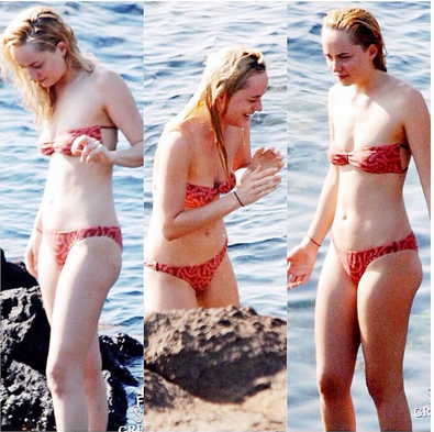 Por eso -y porque, qué demonios, es una joven con derecho a disfrutar del tiempo libre y de sus amigos como todas las demás- se fue unos días a disfrutar del mejor sol del mar Mediterráneo, en Sicilia. De todos es sabido que, como buena hijastra de Antonio Banderas, nuestro malagueño más internacional, Dakota Johnson es conocedora de los encantos del mar que baña las costas italianas y españolas. Aprovechando los últimos coletazos del sol del verano lució una figura estupenda y, todavía con su rubio natural, le enfundó en un bikini en tonos naranjas para bañarse. Tal vez la última tregua antes de empezar a trabajar en su siguiente proyecto, el filme de corte romántico Forever Interrupted.