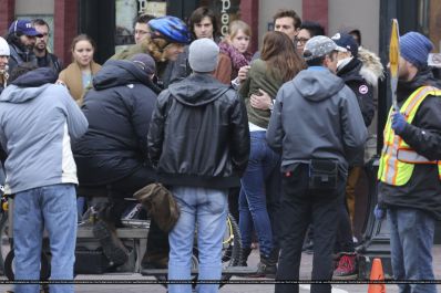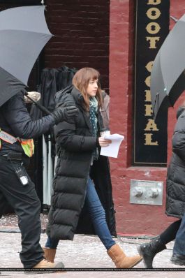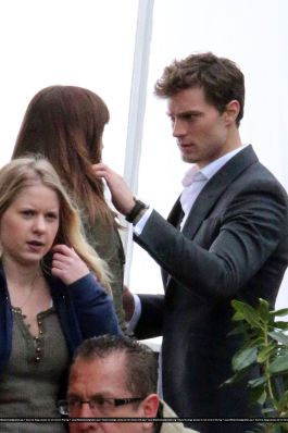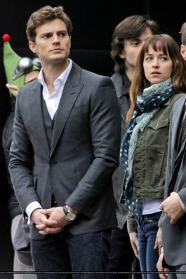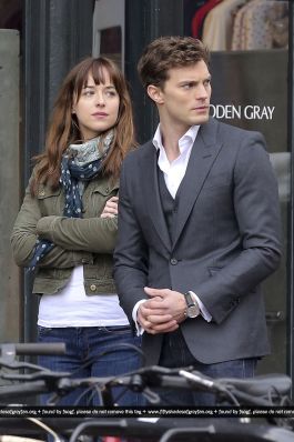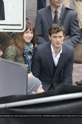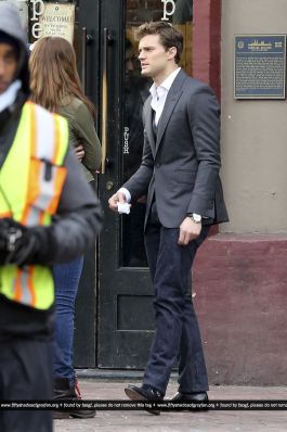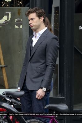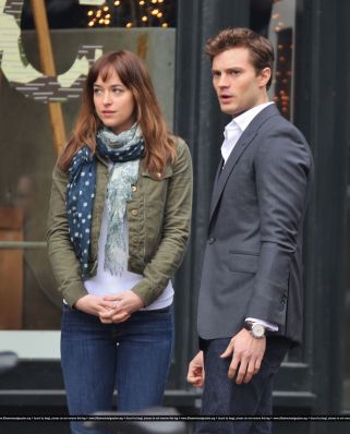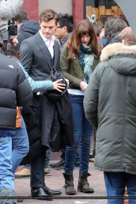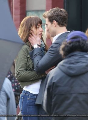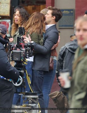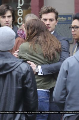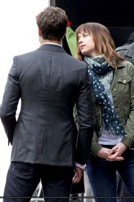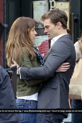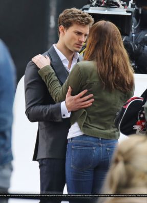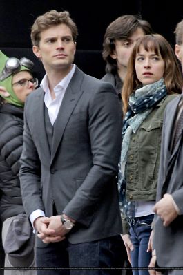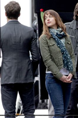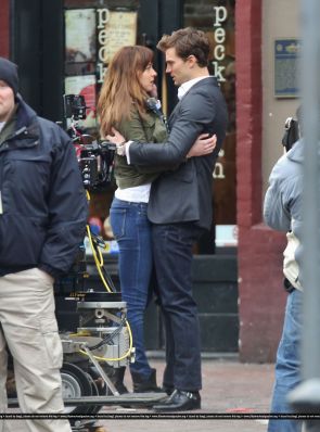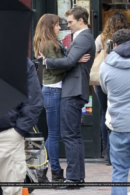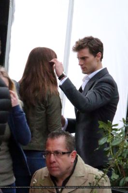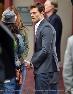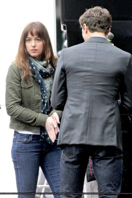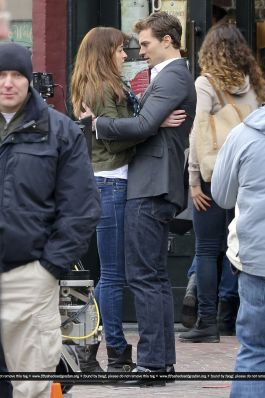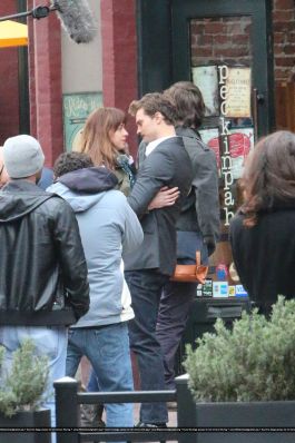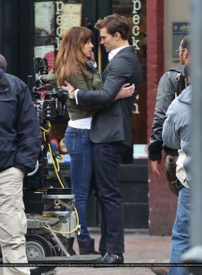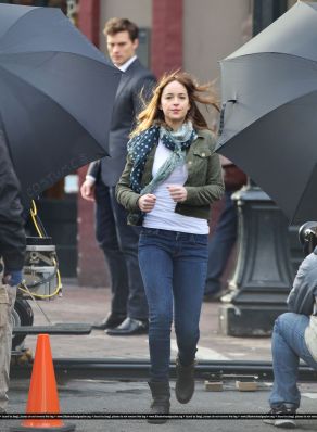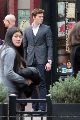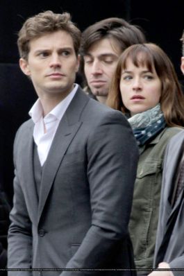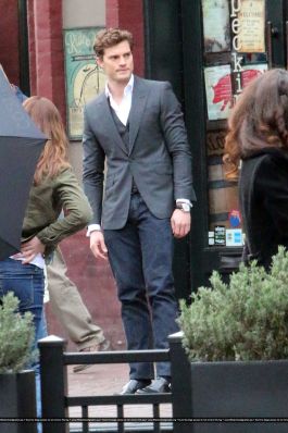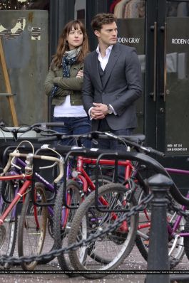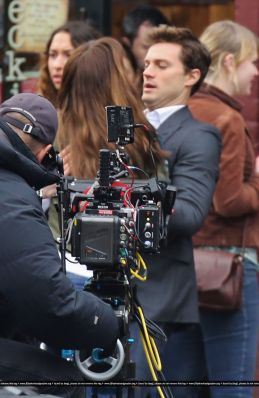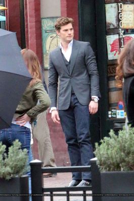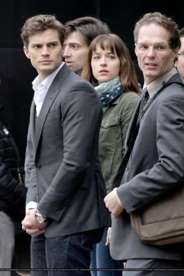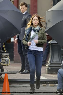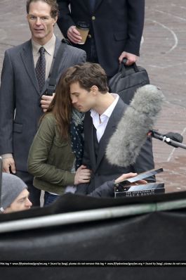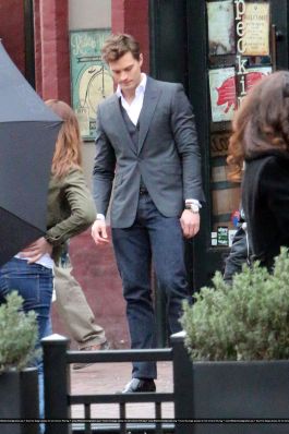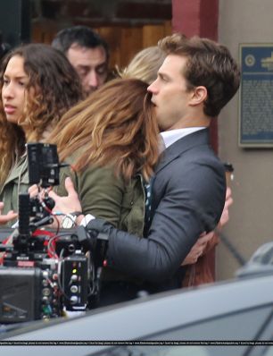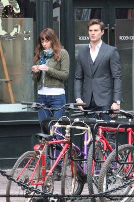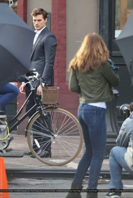 Fotos del rodaje de la película 50 Sombras de Grey: Escena en la que christian salva a Anasasia de ser atropellada por una bicicleta