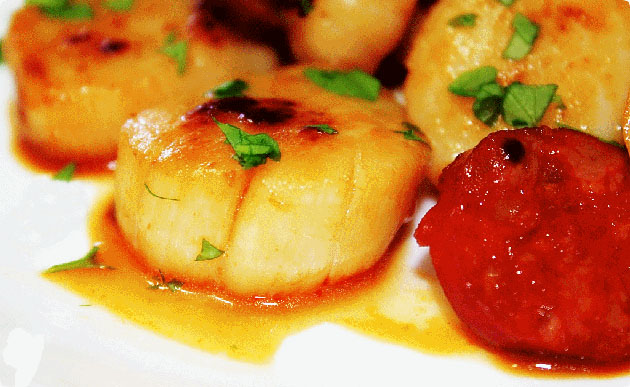 Vieiras con chorizo