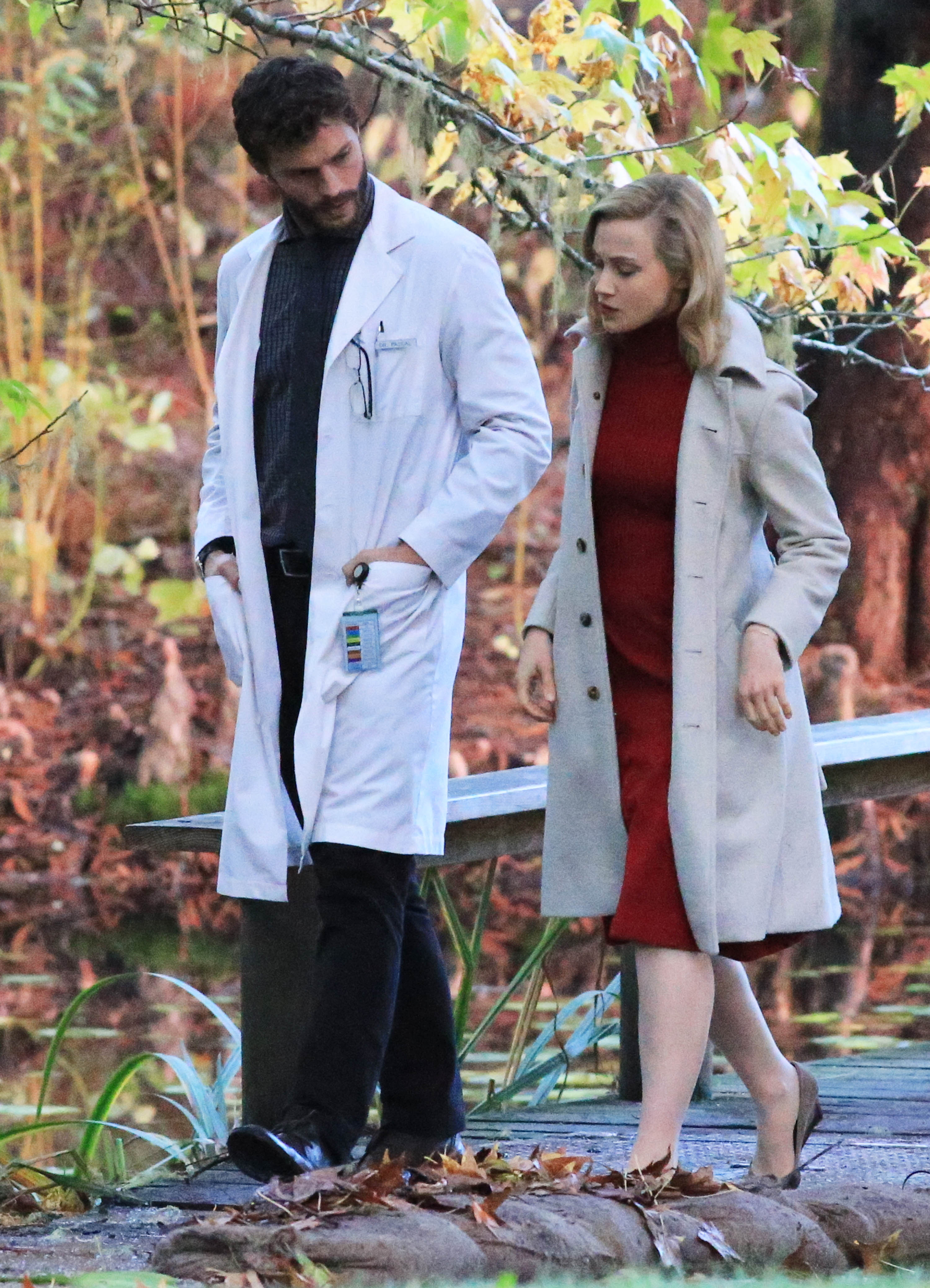 51578909 Actors Jamie Dornan and Sarah Gadon film scenes for their upcoming film ‘The 9th Life of Louis Drax’ at VanDusen Botanical Garden on November 7, 2014 in Vancouver, Canada. The film tells the stort of a psychologist who begins working with a young boy that has suffered a near-fatal fall and finds himself drawn into a mystery that tests the boundaries of fantasy and reality. FameFlynet, Inc – Beverly Hills, CA, USA – +1 (818) 307-4813