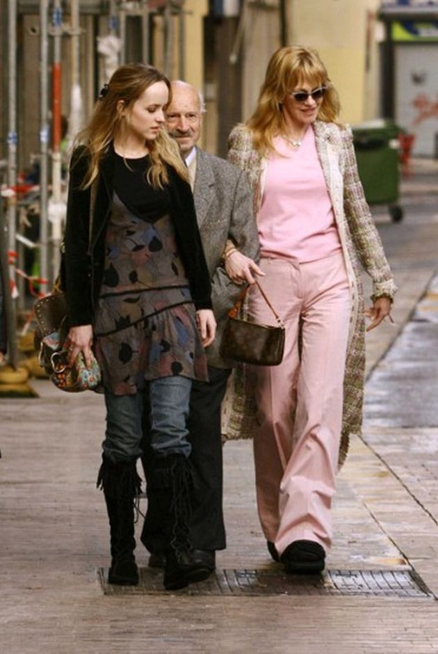 Que Dakota se apellide Johnson y que se dedique al cine no es ninguna casualidad. Ni que el otro apellido, el que no luce porque los estadounidenses generalmente usan sólo uno, y es el del padre, sea Griffith. Sus padres son Don Johnson (un estupendo galán hollywoodiense, de los primeros en llevar camiseta de algodón con cuello de pico y americana encima) y Melanie Griffith (la mujer más que mujer de Armas de mujer). Y qué decir de su abuela materna, Tippi Hedren, la estupenda protagonista de Los pájaros de Hitchcock. En 1995 Melanie conoció a Antonio Banderas durante el rodaje de Two much y a su lado ha estado desde entonces. Así que Dakota ha crecido respirando cine por todos los poros y, a sus veintitrés años ha dado un zapatazo en el suelo y se ha colado en la primera línea del cine de Hollywood: va a ser la protagonista del éxito más fulminante de 2015: la adaptación al cine de la trilogía erótica Cincuenta sombras de Grey.