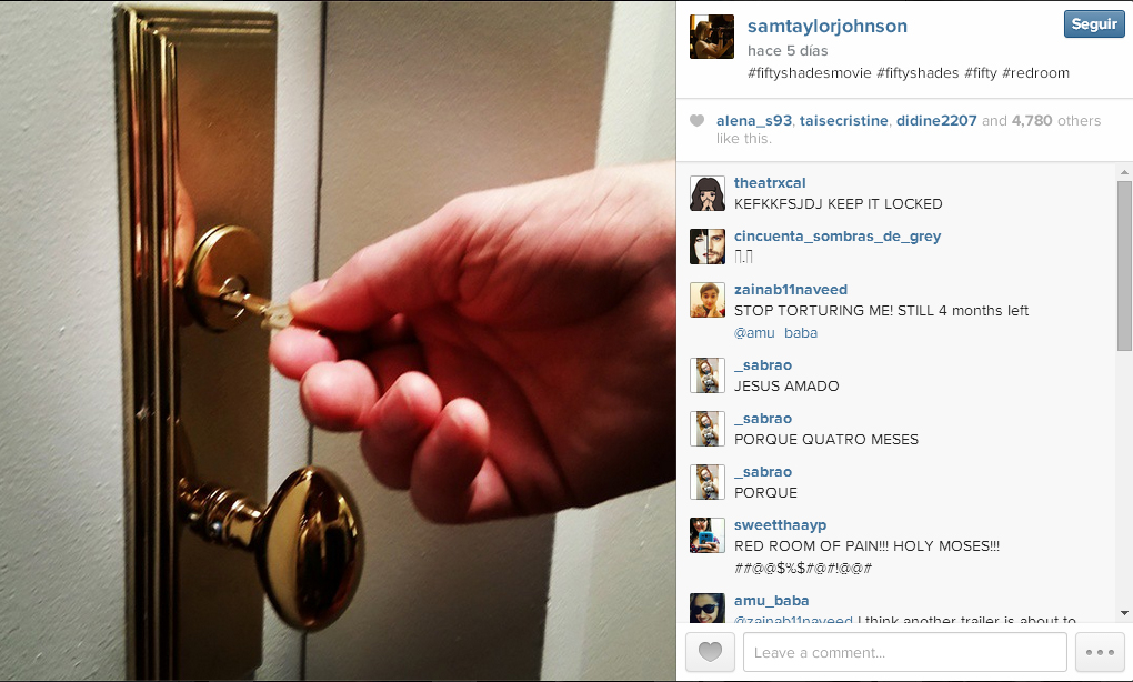 Sabíamos que habían estado rodando en el cuarto rojo del dolor porque la directora de la adaptación al cine de Cincuenta sombras de Grey, Sam Taylor Johnson, había publicado esta foto en instagram: