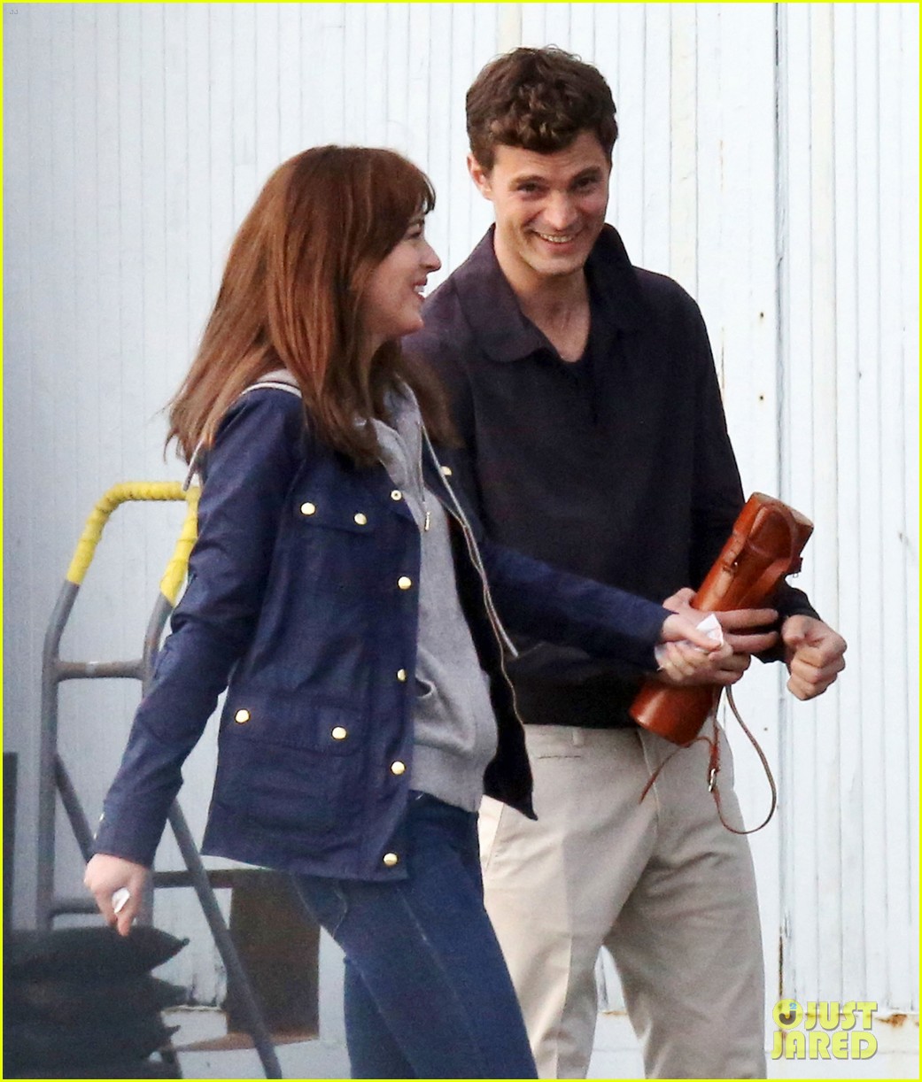 51558143 Fifty shades of reshoots continue! Actor Jamie Dornan and Dakota Johnson film reshoots for “Fifty Shades Of Grey” at the airport on October 14, 2014 in Vancouver, Canada. Director Sam Taylor-Johnson was seen giving the pair some guidance between takes. FameFlynet, Inc – Beverly Hills, CA, USA – +1 (818) 307-4813